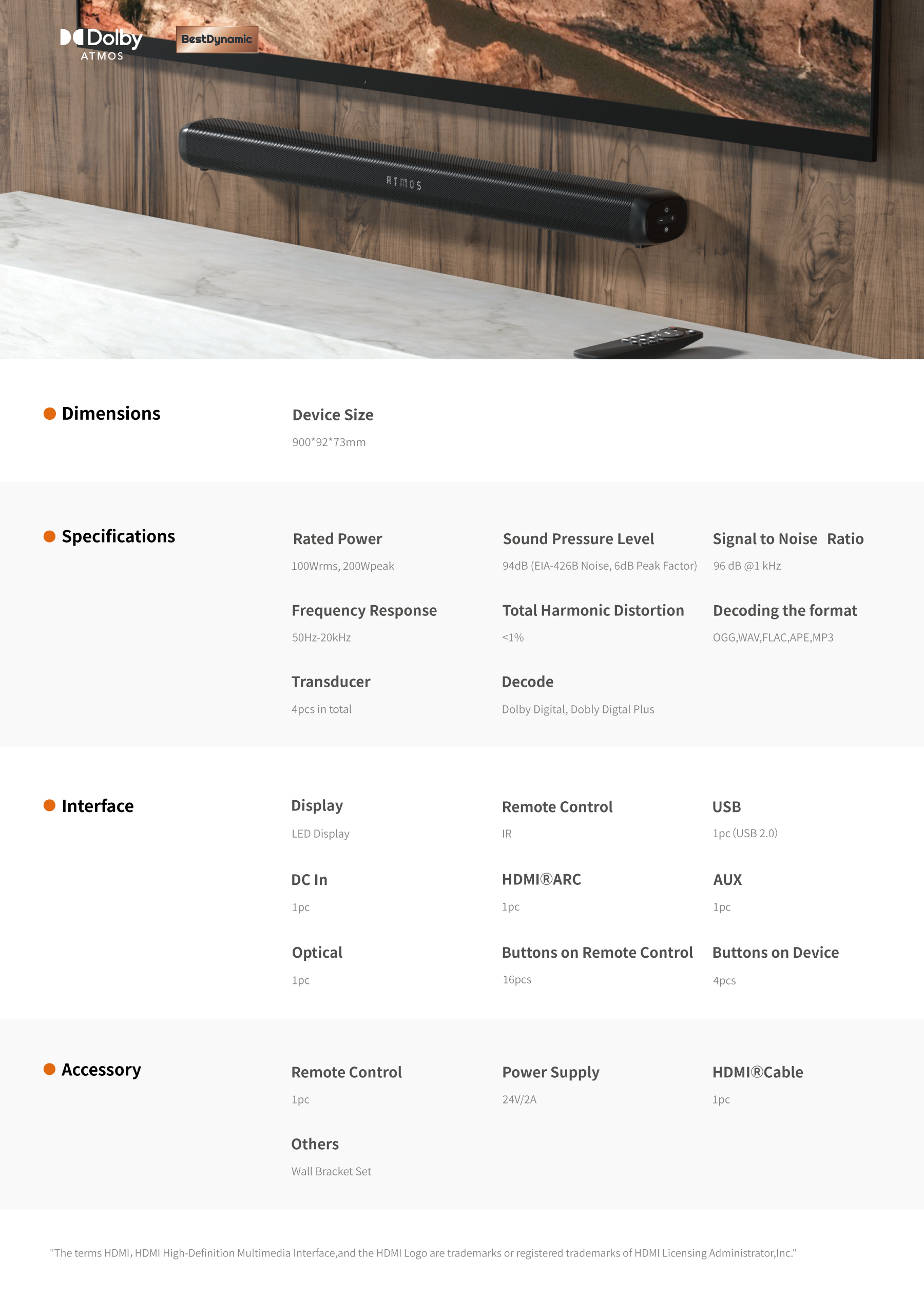 •接口及配件:HDMI®eARC/ARC、红外遥控……