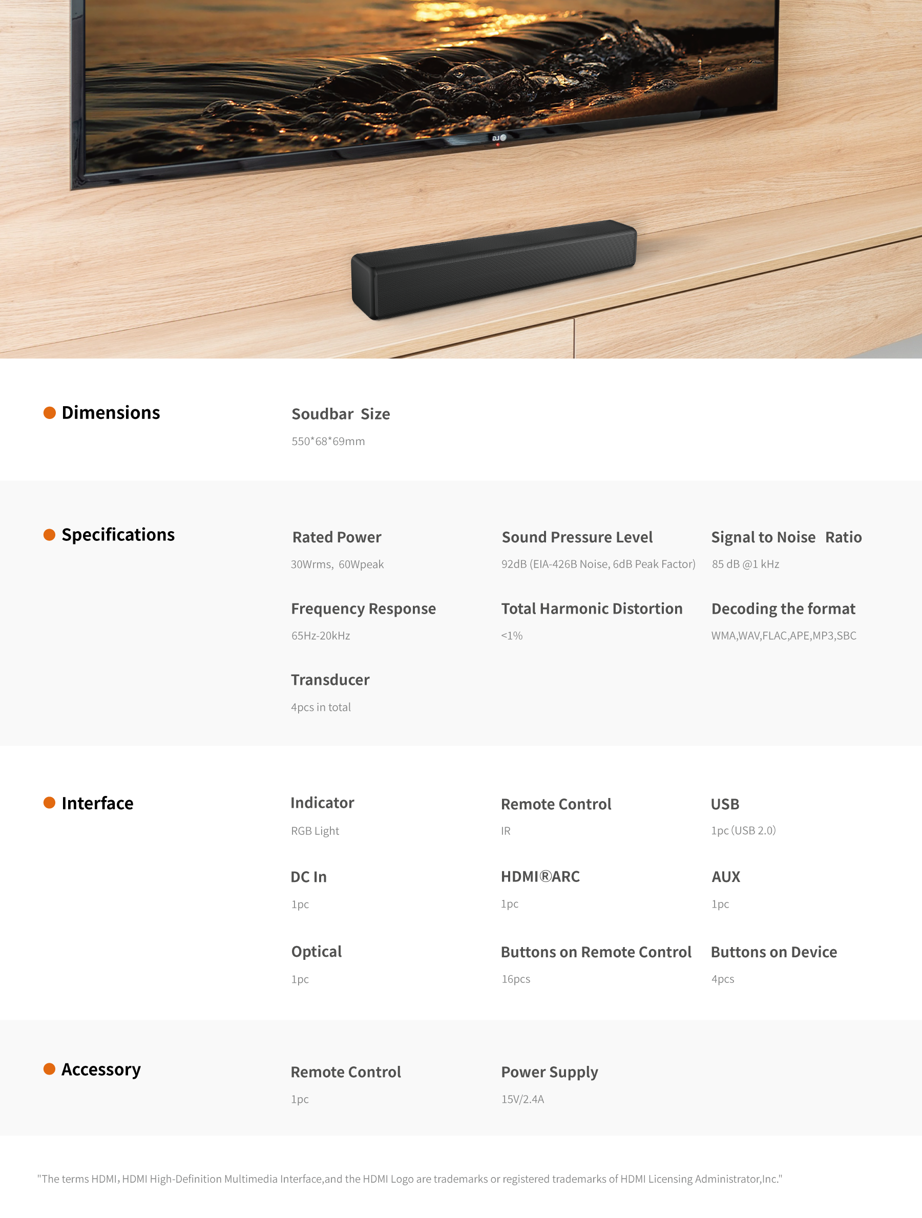 •接口及配件:HDMI eARC/ARC、红外遥控……