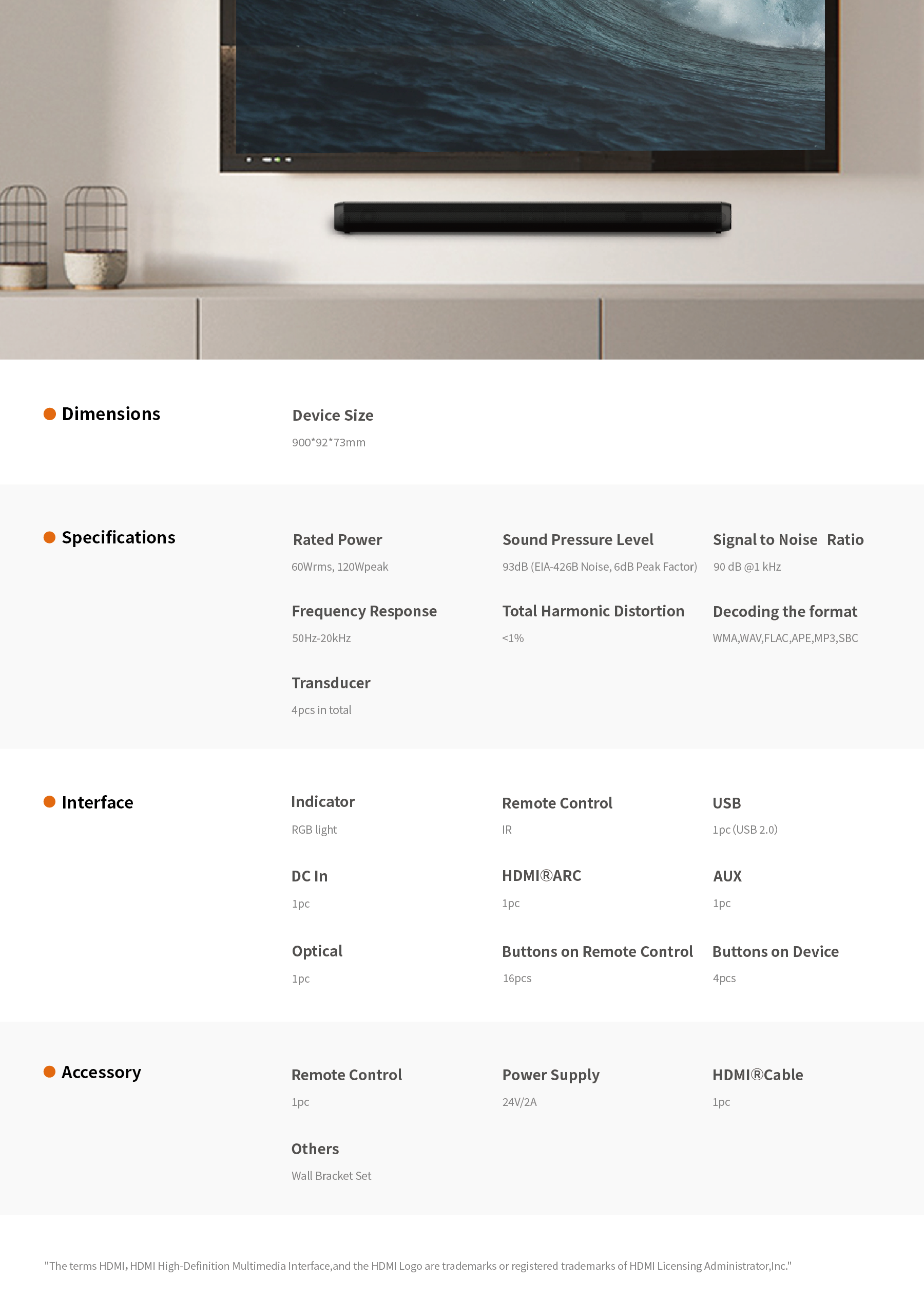 •接口及配件:HDMI eARC/ARC、红外遥控……
