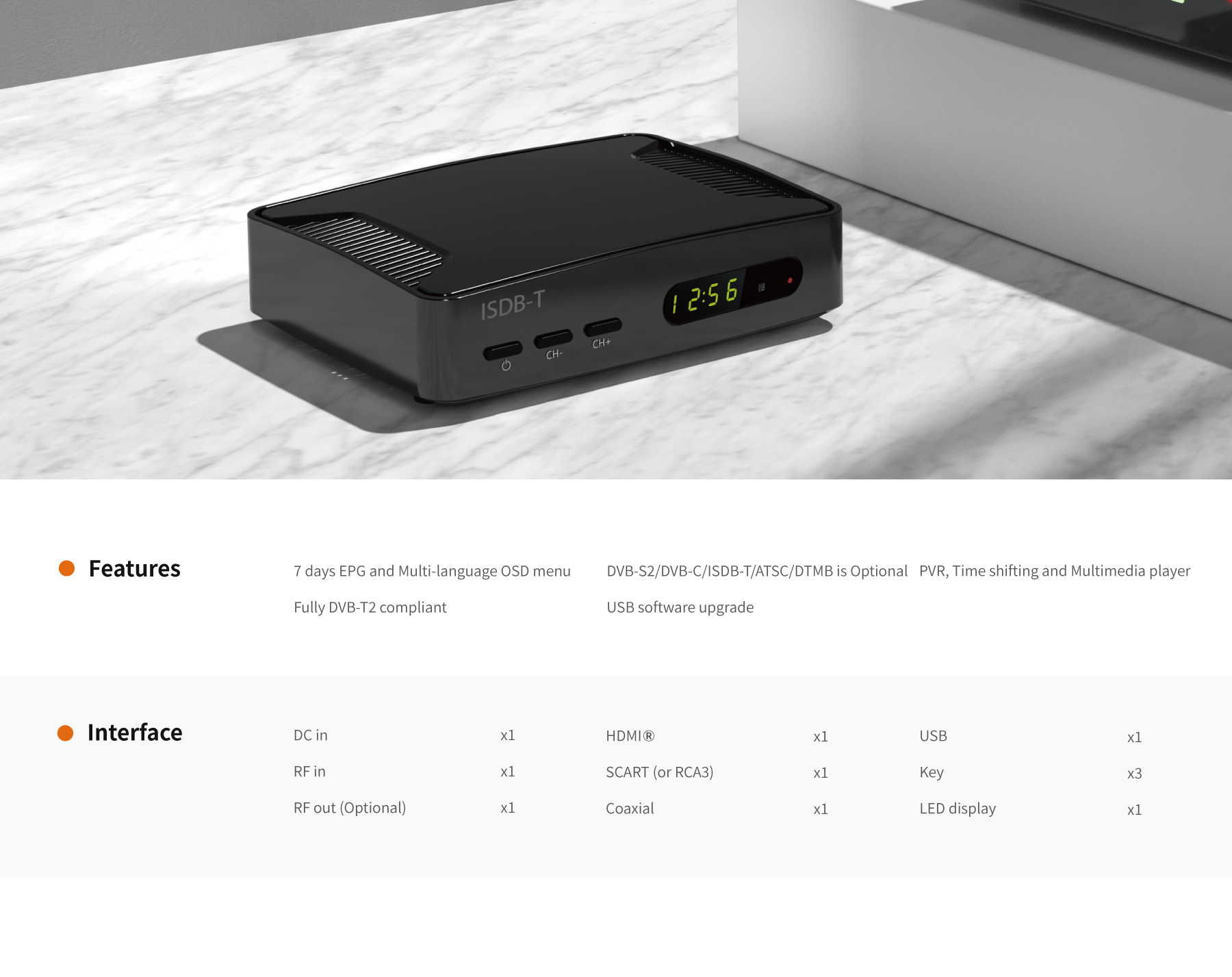 •DVB-S2/DVB-C/ISDB-T/ATSC/DTMB is Optional