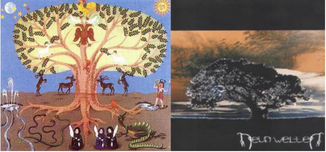 Neun Welten在德语中的意思是“九个世界”:北欧神话中,由世界树支撑的世界分为三层九个国度,包括阿萨神国、华纳神国、精灵之国、人类之国、巨人之国、侏儒之国、冥国、雾之国、火之国等。这里面并无“要有光”的创世神,众神和人一样,都是世界树舞台上的演员,分享着彼此之间的命运。